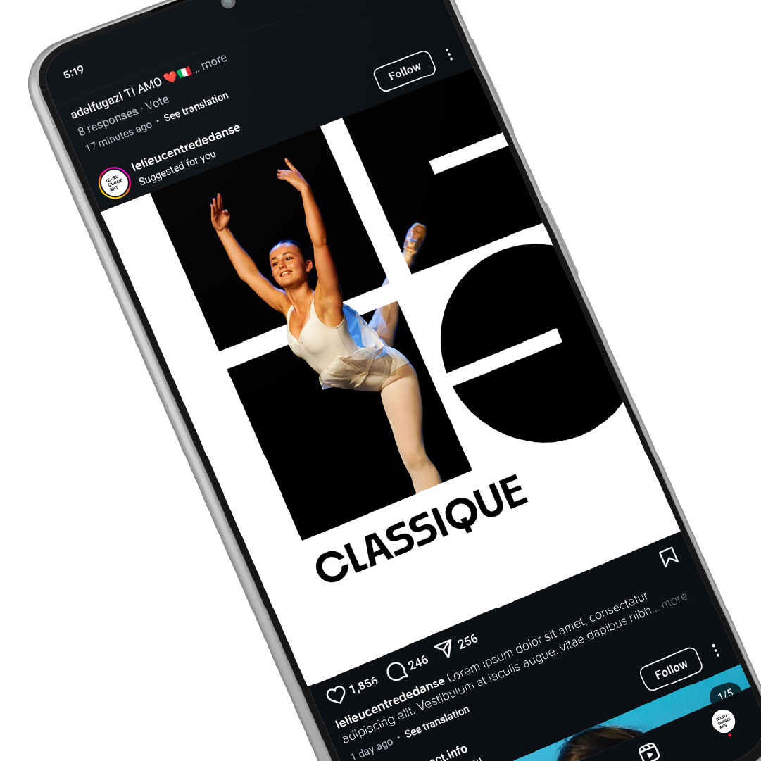 Notre approche a été de matérialiser l'invisible : la tension sublime entre la rigueur de l'apprentissage et la liberté de la danse. Nous avons bâti un système graphique où la structure (un logo d'inspiration Bauhaus) est faite pour être transgressée par le flux. Dans cette nouvelle identité, la photographie ne décore pas, elle envahit et brise le cadre géométrique. C'est la promesse d'une marque qui ne contient plus l'émotion, mais qui lui offre une architecture solide pour mieux jaillir et rayonner.